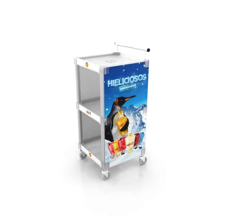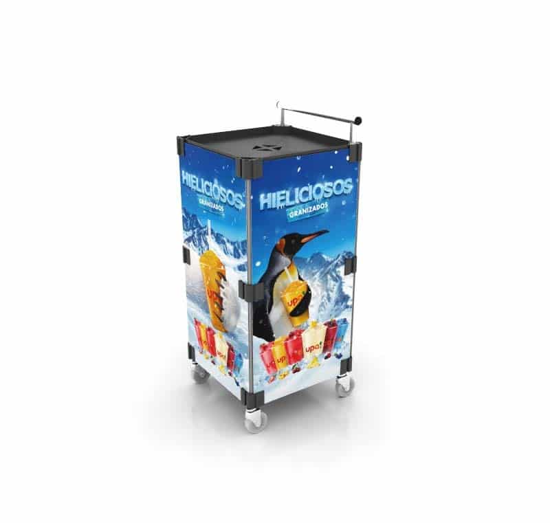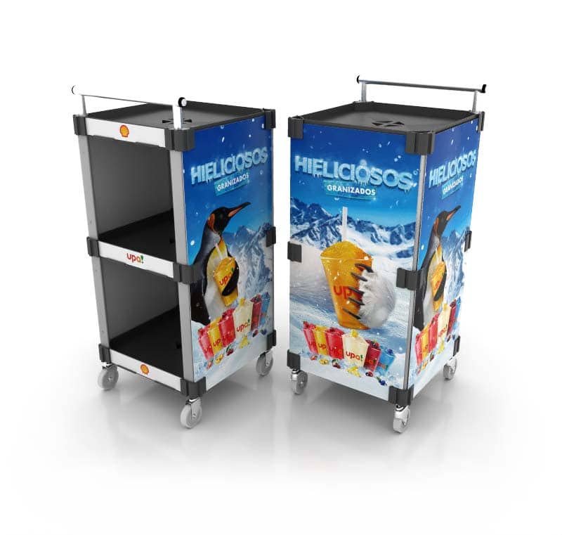 – Mesón armable con laterales y flejeras con impresión directa para publicitar tu marca.