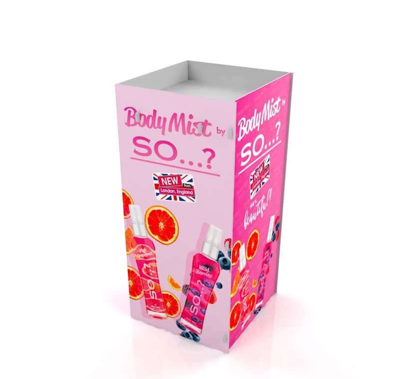 Versátil exhibidor en Polipropileno, totalmente resistente, liviano y customisable para poder exhibir de la mejor forma tu producto y marca en el Punto de Venta.