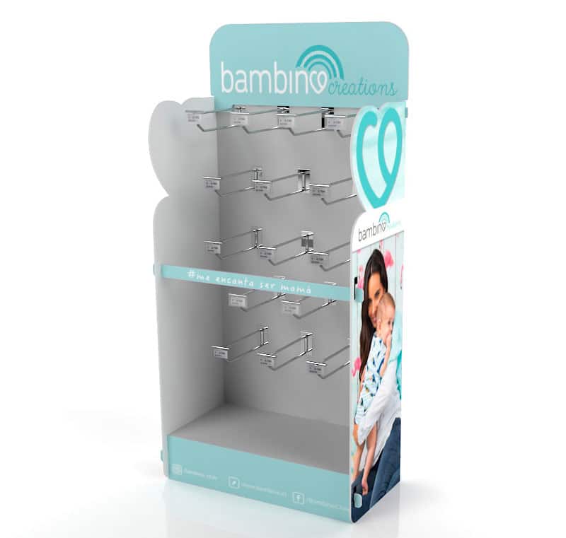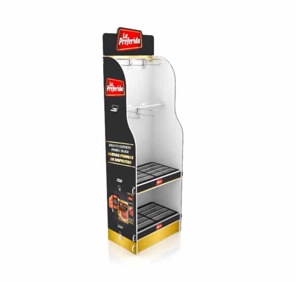 Versátil exhibidor en Polipropileno, totalmente resistente, liviano y customisable para poder exhibir de la mejor forma tu producto y marca en el Punto de Venta.