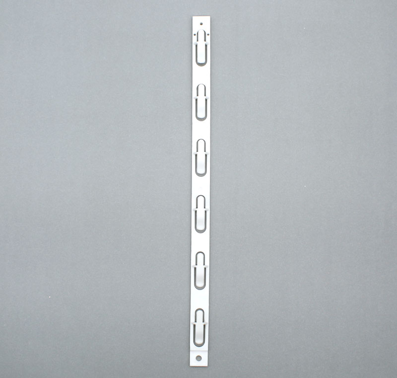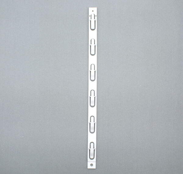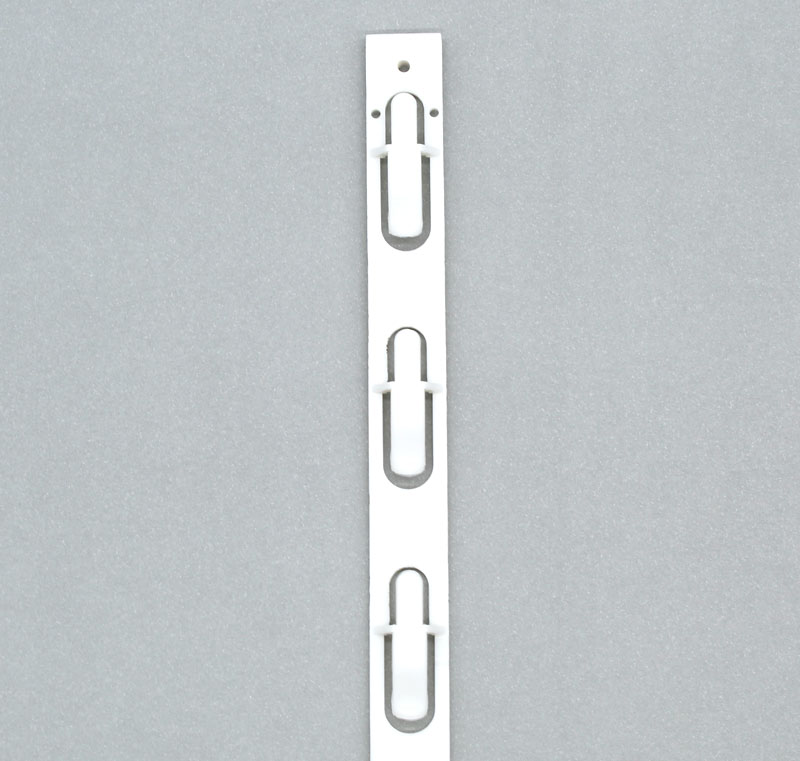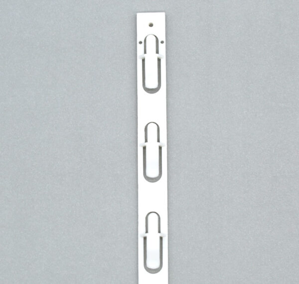 Tira de exhibición para ventas cruzadas, cuenta con 6 posiciones. Cada gancho soporta productos con un peso aprox. 70 gramos
