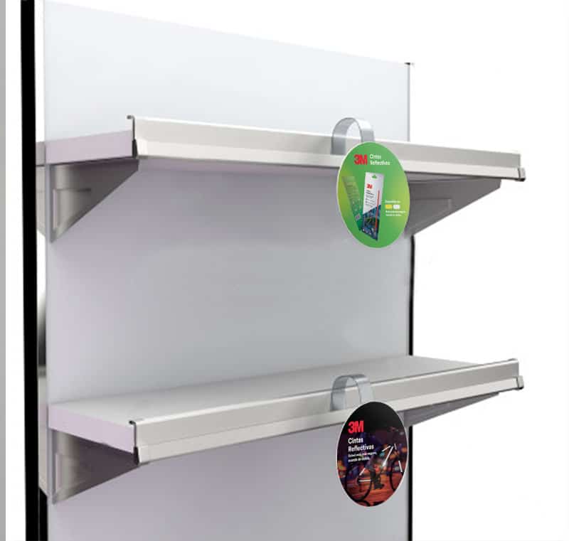 Pata de Mica para publicidad en Retail con adhesivo en ambos extremos. Ideal para gráficas en cartón duplex de 250 grs.