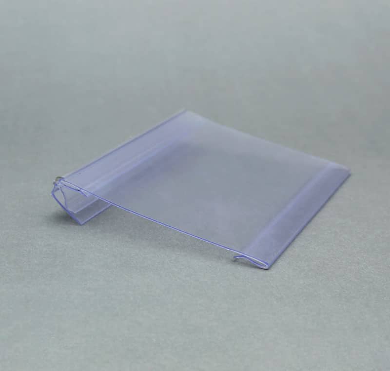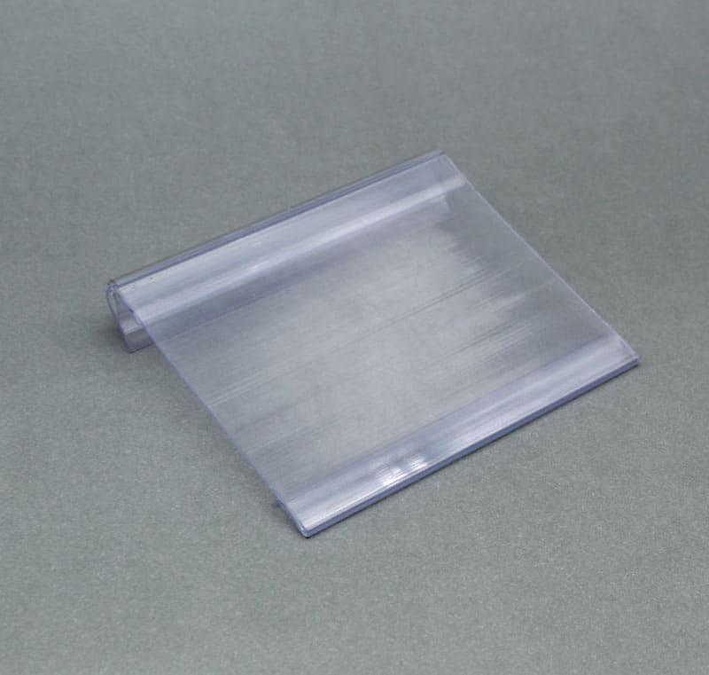 El porta precio modelo abatible, cuenta con una pestaña en la parte frontal para colocar precios o información de los productos, y en la posterior un enganche que le da un ángulo de visión.