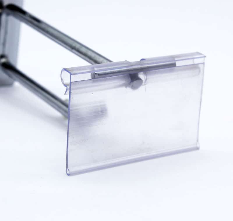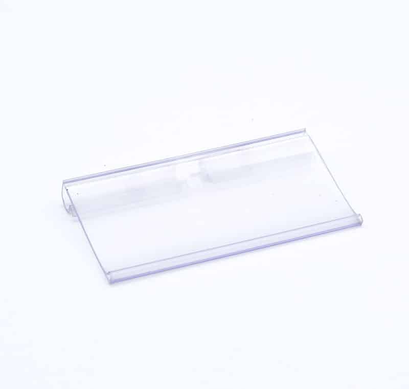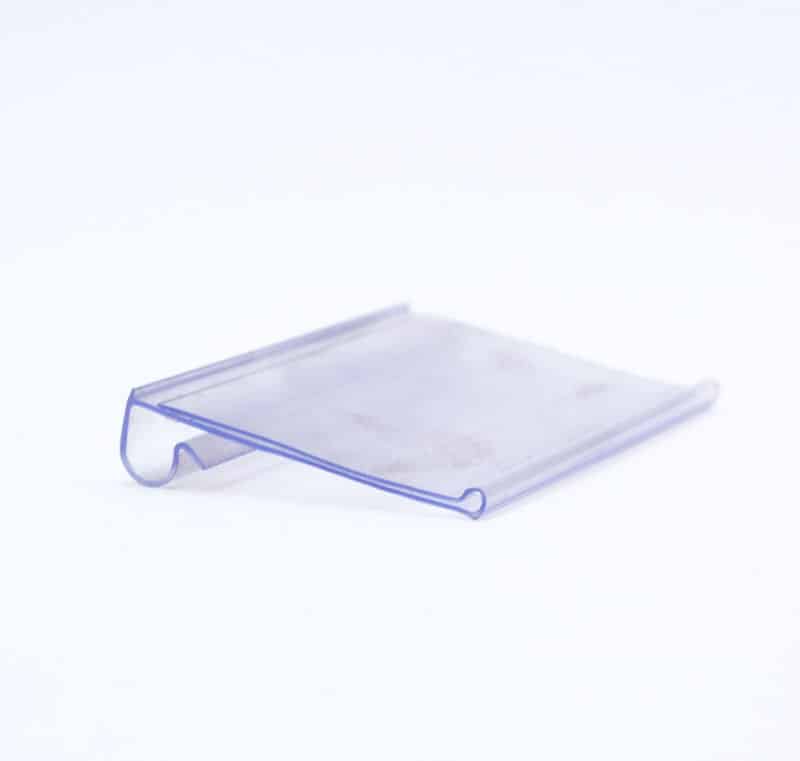 Fleje de PVC transparente con enganche para calce en gancheras metálicas de doble espiga.