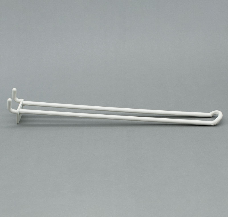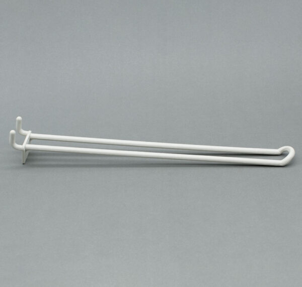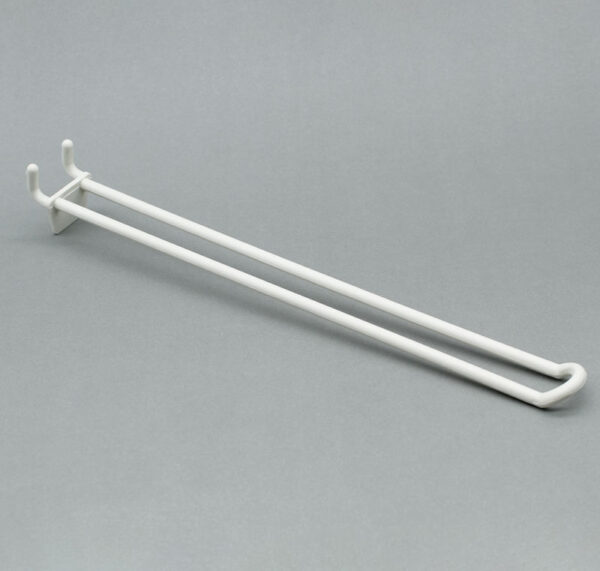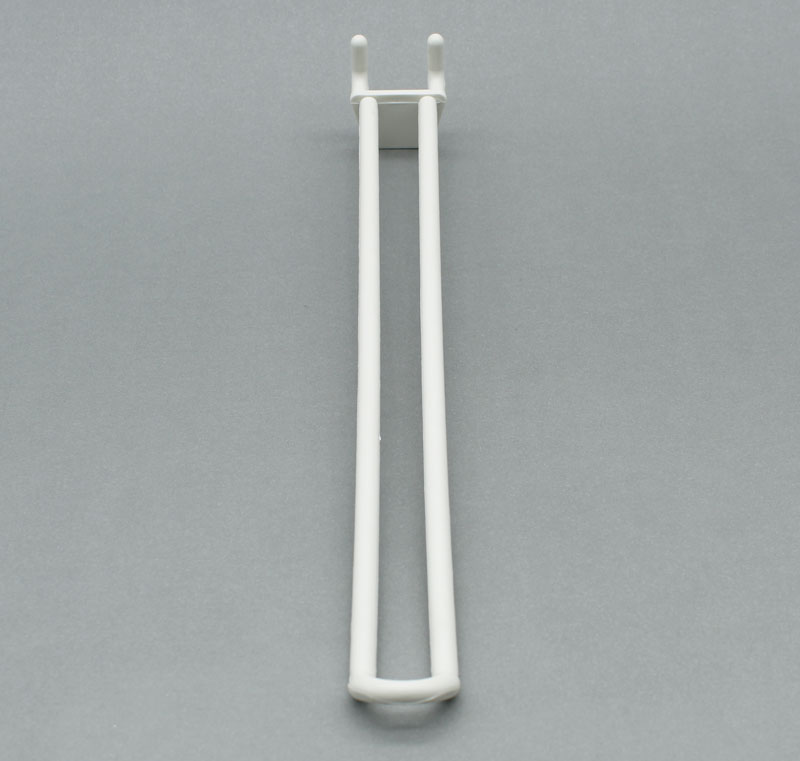 Ganchera espiga doble. Elaborada en material plástico ABS blanco. Ideal para usarse en muebles de cartón.