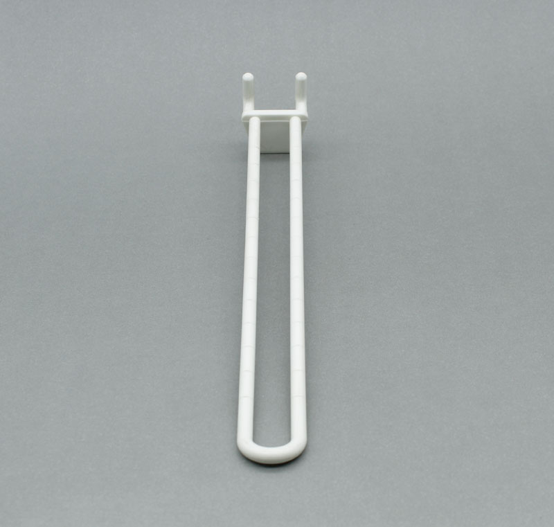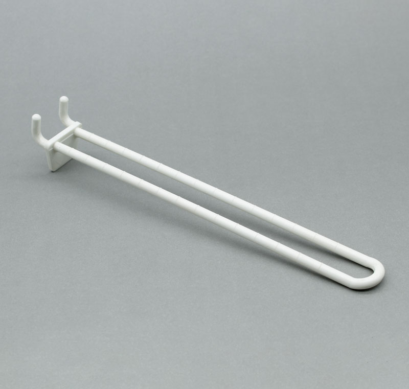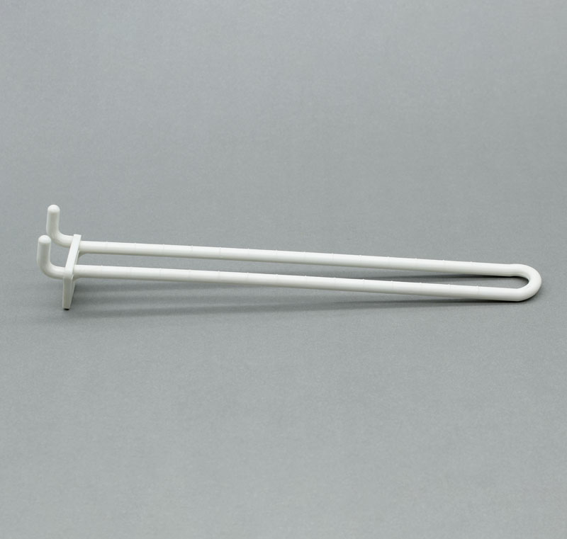 Descripción: Ganchera espiga doble. Elaborada en material plástico ABS color blanco. Ideal para usarse en muebles de cartón.