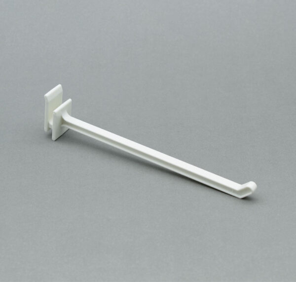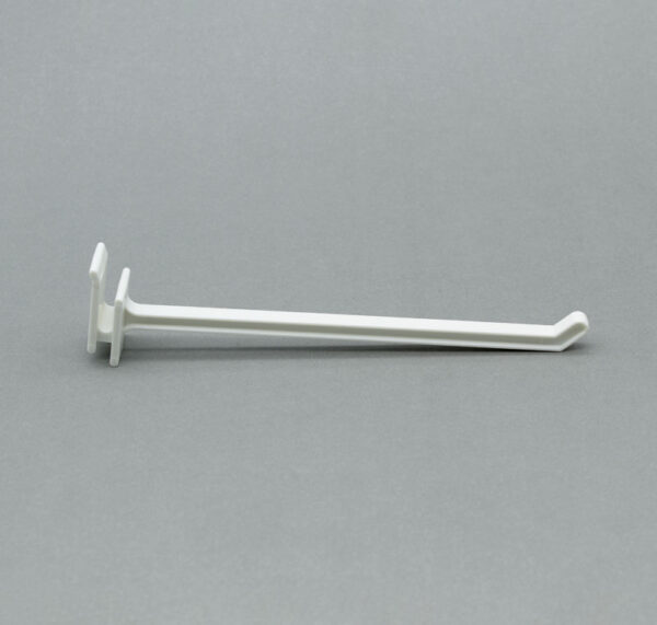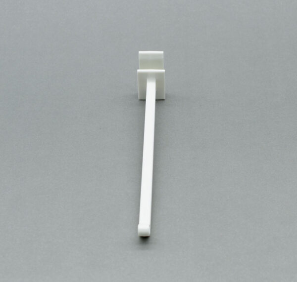 Descripción: Ganchera de una varilla. Elaborada en material plástico ABS blanco. Ideal para usarse en muebles de cartón.
