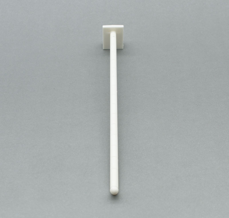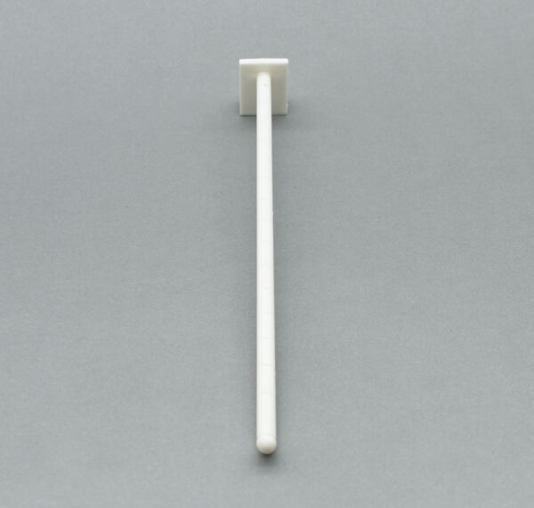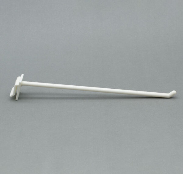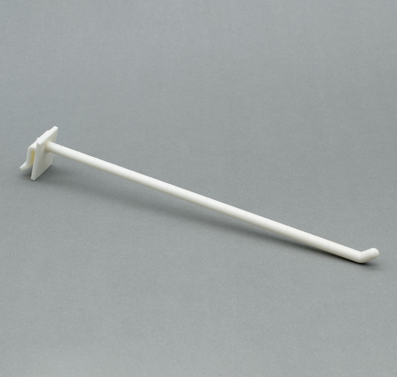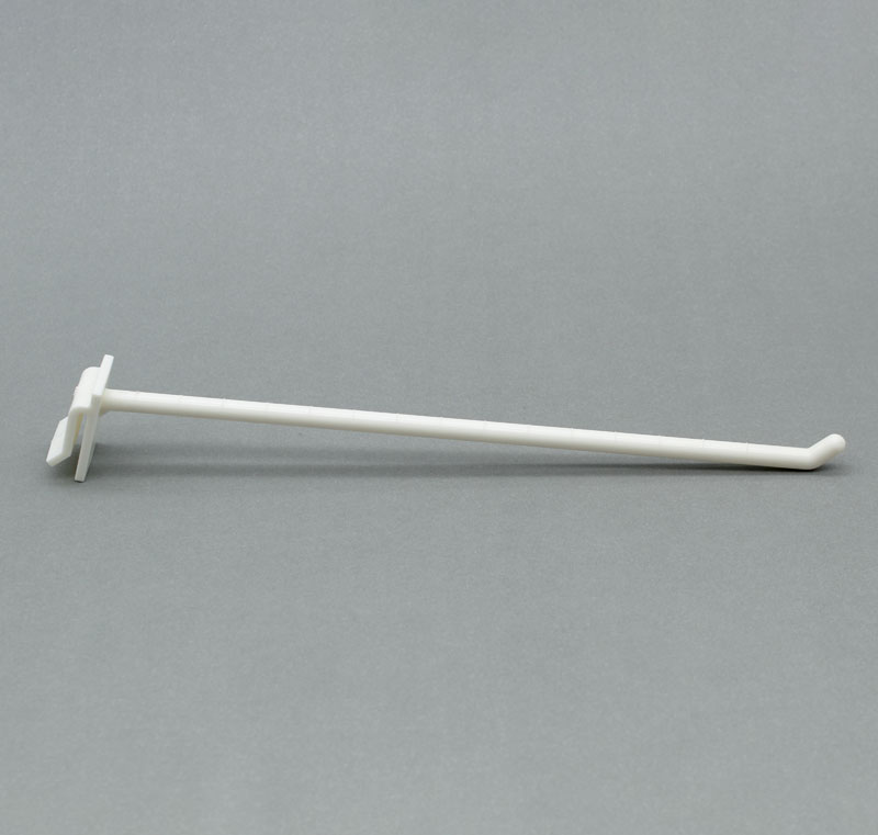 Ganchera de una varilla. Elaborada en material plástico ABS blanco. Ideal para usarse en muebles de cartón.