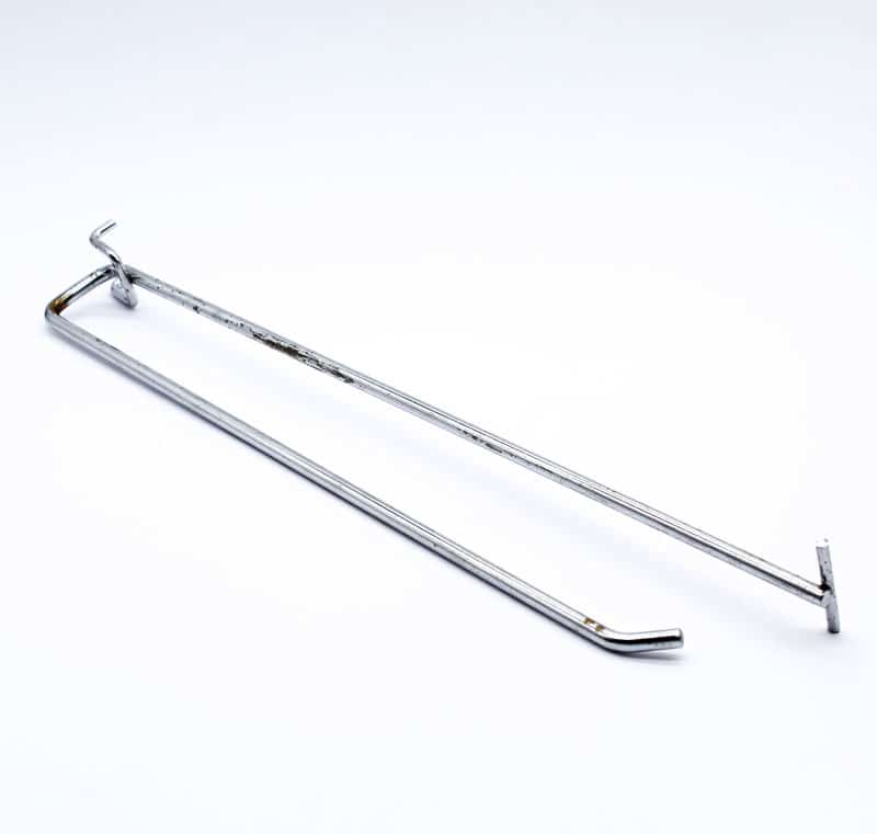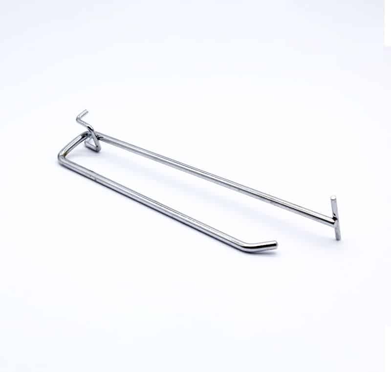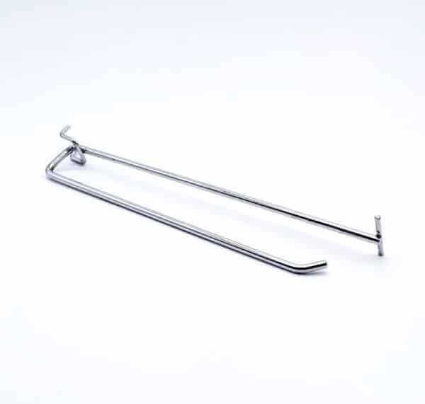 Ganchera doble varilla, diseñada para colocar un porta precio en la vara superior y el producto en la inferior.