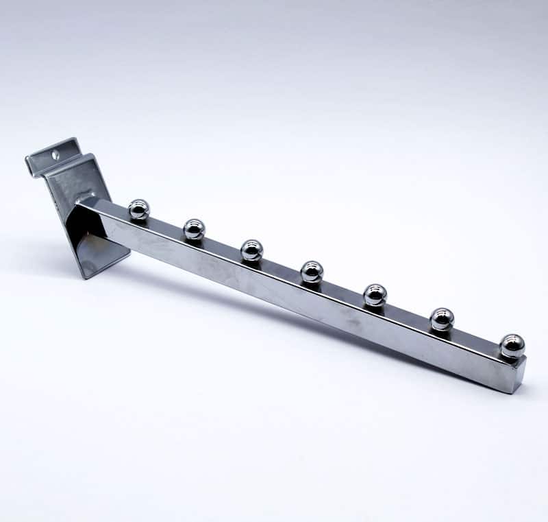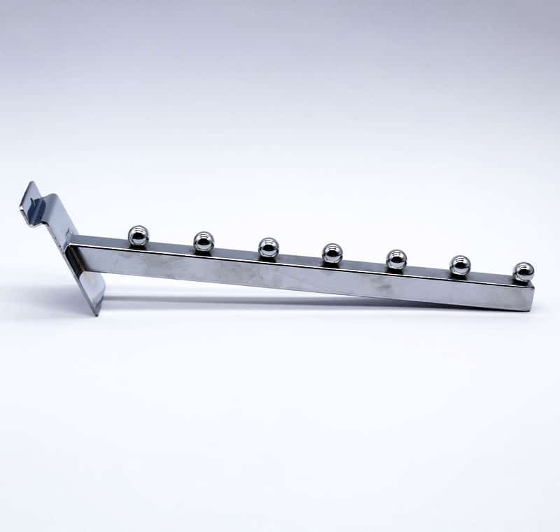 Ganchera metálica modelo inclinado con 7 topes y terminación cromada.